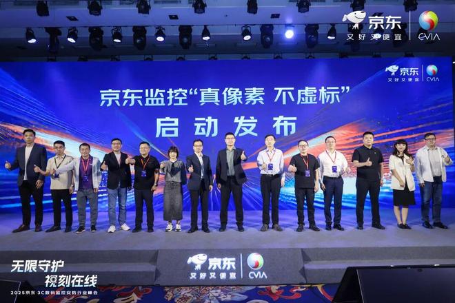 大会现场,京东联合中国电子视像行业协会及企业代表共同发布了《家用及类似用途监控摄像头技术规范》和“真像素 不虚标”倡议。