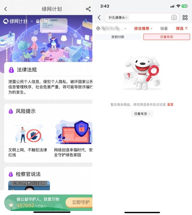 在某宝某东等电商平台上搜索“头”“特小摄像头”或“眼珠子”等关键词,前者会出现“文明上网,不触犯法律红线”的风险提示,后者显示“暂无相关商品”,基本无法找到改装成日常用品的头。