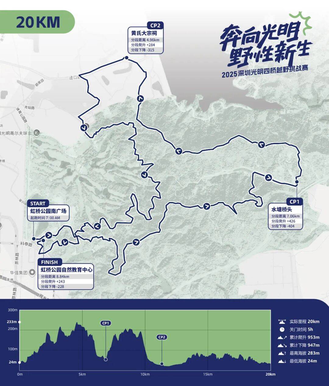 本次 20km 组别带你一次性走过四桥,在光明留下你的打卡印记。亲子组则经过虹桥、悬桥、探桥。