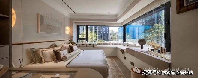 实景图,仅供参考主卧拥有270度环幕飘窗,视野和采光优越,配备了高奢卫生间,空间感、尊崇感拉到顶格。