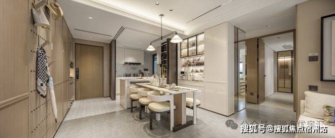 玄关也是非常具有仪式感,包括厨房拥有超长的操作台面,同样也是做了满级收纳。